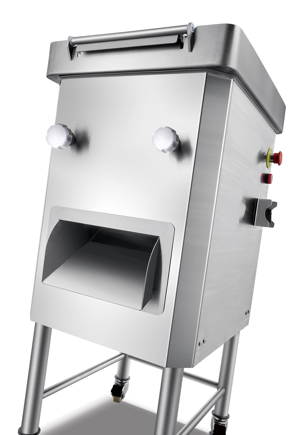 通过选用不同间距的刀组,加工出各种规格尺寸的肉片和肉丝。