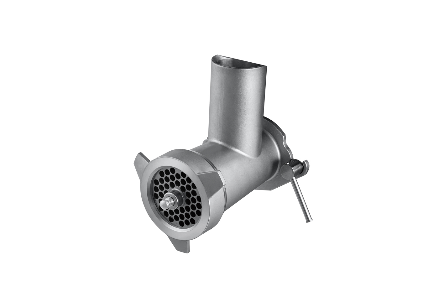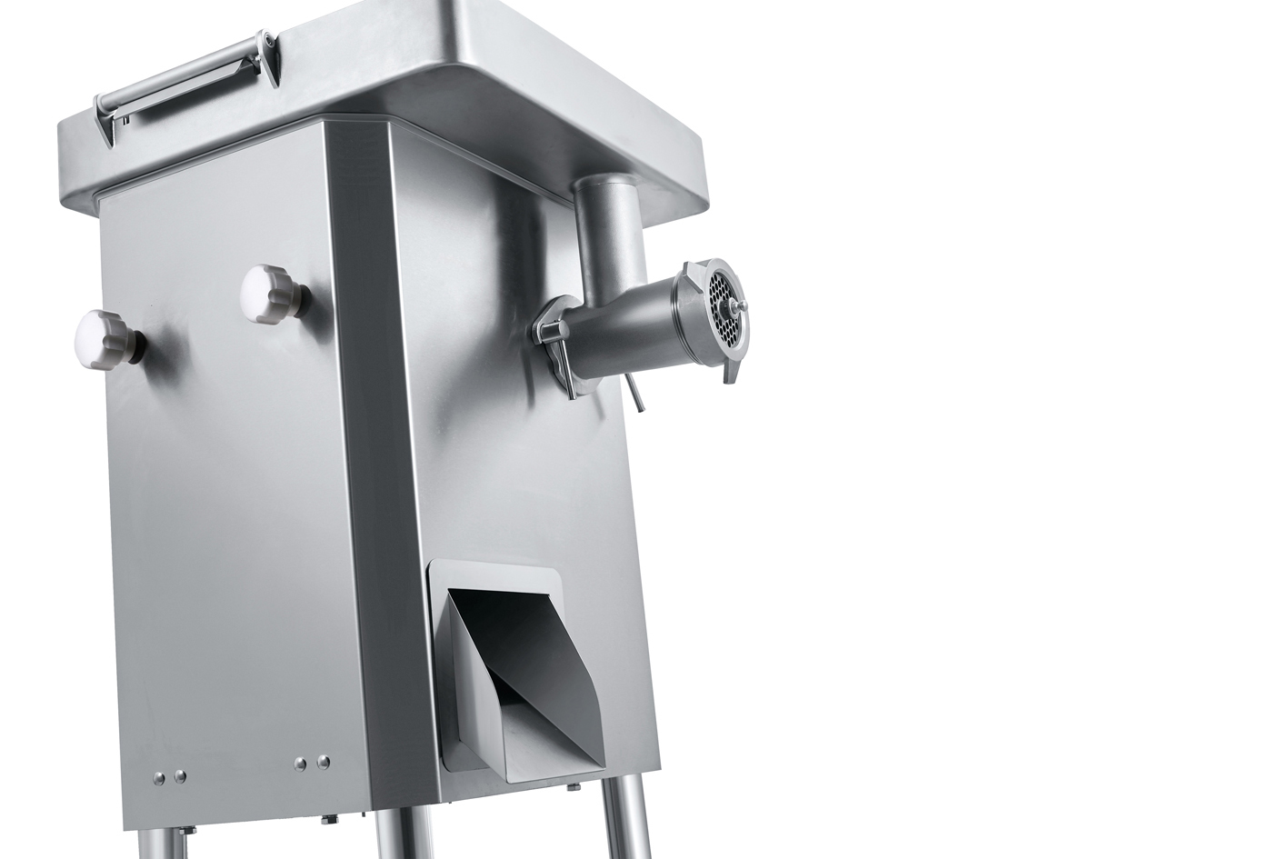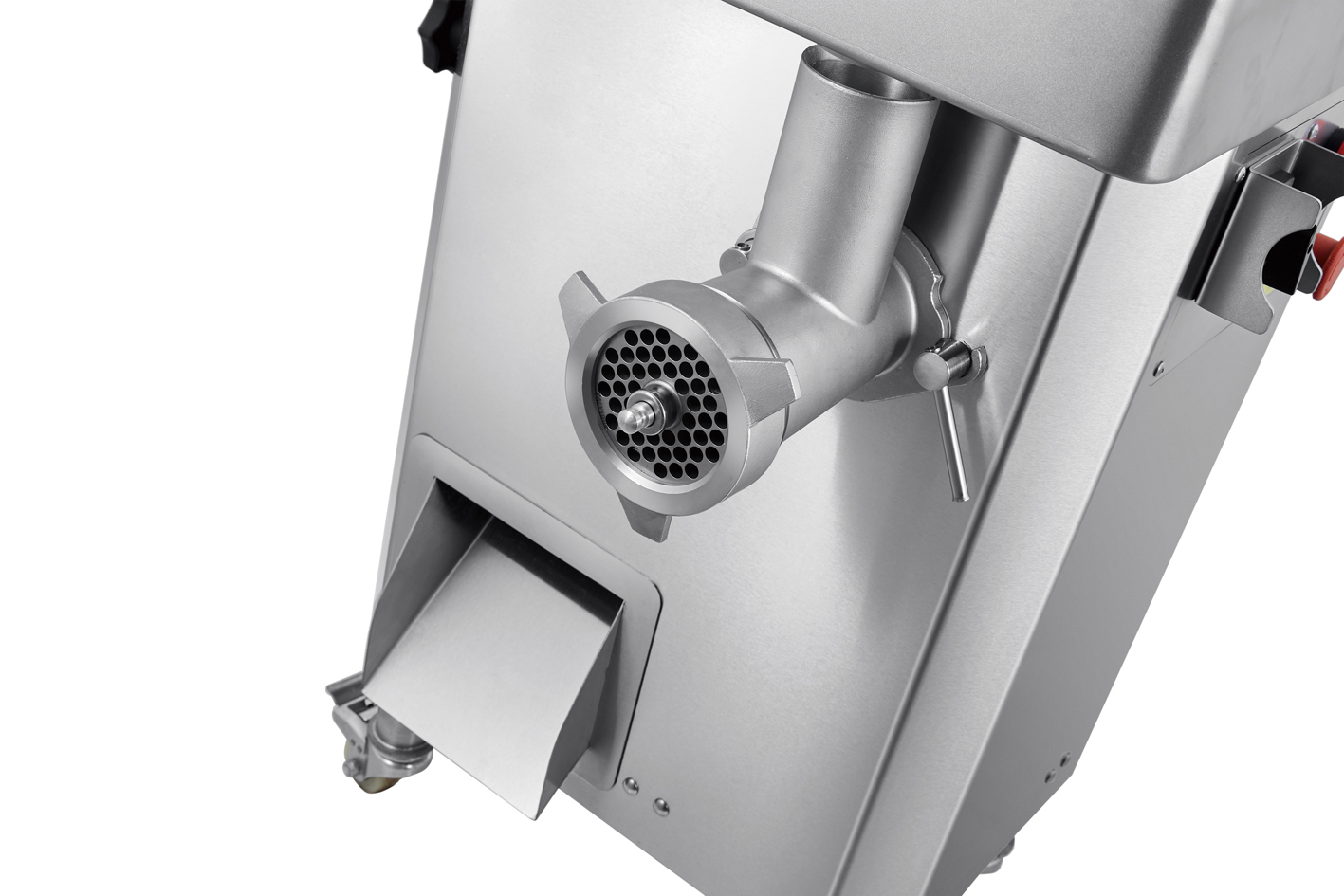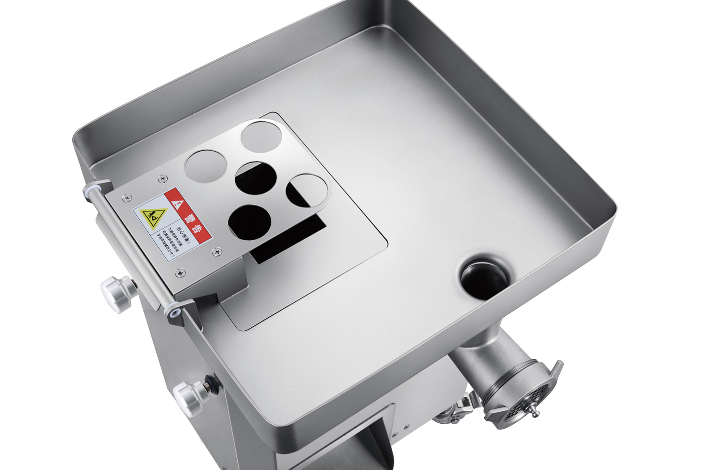 3/密封不锈钢机身,绞肉主轴传动双密封设计,独立切片刀组,拆卸方便,便于清洁。