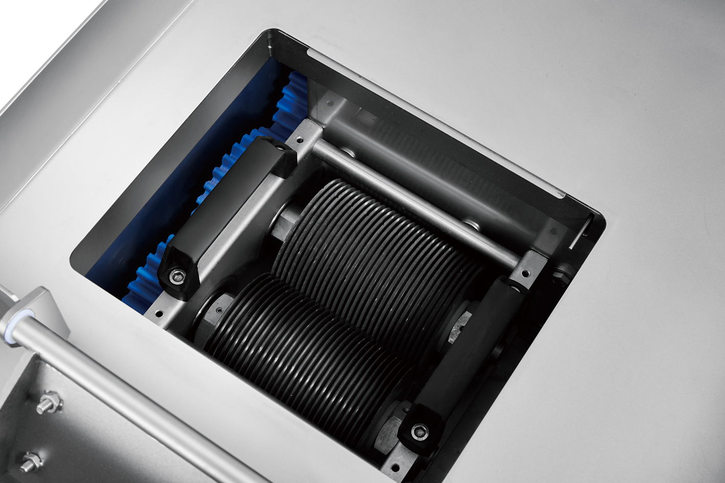 通过选用不同间距的刀组,加工出各种规格尺寸的肉丝。